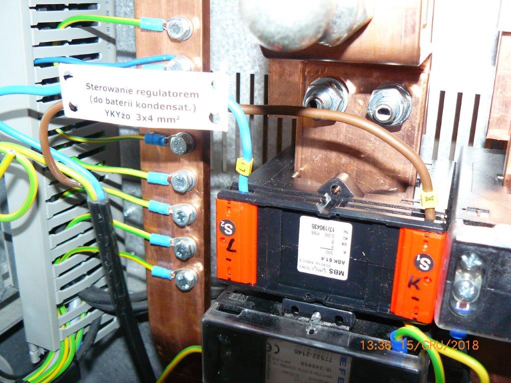 wykonanie układu kompensacji mocy biernej poprzez dobór i montaż montaż baterii kondensatorowej